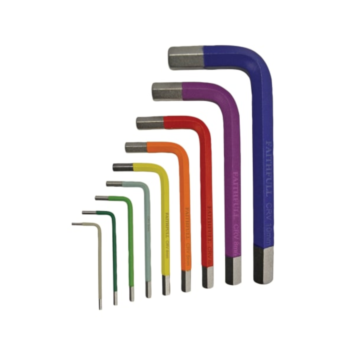 9件彩色编码L形,十六进制键。钥匙由铬钒钢制成,并进行高温和耐用性。他们有缎面镀铬完成,用于防锈。每个键都是颜色编码,以便尺寸尺寸识别。该套装在坚固的塑料储物盒中提供。