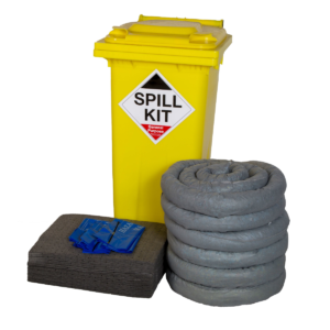 Product description400 litre Spill Kit in a yellow Locker. For use on leaks and spills in the workplace for quick and efficient clean-up. The kit includes absorbent socks to contain spills and protect drains and absorbent pads to soak up spilled liquids. Disposal bag and zip-tie included. General Purpose • Coolant • Antifreeze • Oil • Water • Weak chemicals • Solvents